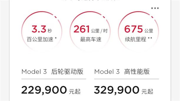 2023年1月6日,Model 3后驅(qū)版降至22.99萬元,降幅達3.6萬元。Model 3高性能版降至32.99萬元,降幅達2萬元。
