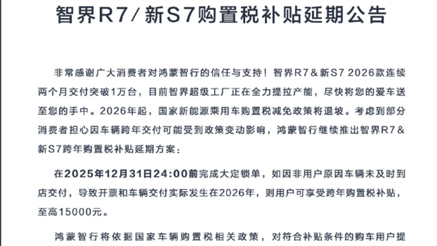 距離2025年結(jié)束,時間已經(jīng)不到30天,特斯拉門店的銷售顧問相比很多國產(chǎn)品牌的“鄰居”,要稍微更忙碌一些。因為,他們頻繁的被問及,馬上新能源汽車的購置稅補貼就要實施減半政策,到2026年,買車可能憑空多出1.5萬元的稅費成本,特斯拉到底跟不跟進。