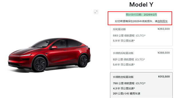 不過,特斯拉和上述幾家的還不太相同。12月1日時,特斯拉官網(wǎng)完成了更新,Model Y的后輪驅(qū)動版將2026年1月交付,長續(xù)航版則在2026年2月交付,目前熱度最高的Model Y L則為4-8周。